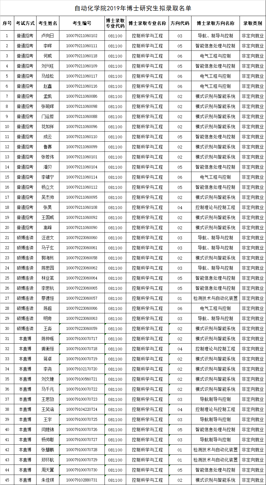 威尼斯登录入口welcome2019年博士研究生拟录取名单