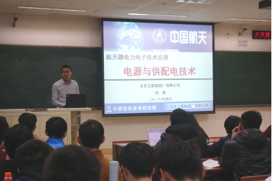 4月9日,在信息楼406教室,冬雷结合电力电子技术课程授课内容,邀请北京卫星制造厂有限公司项目主管、工程师刘密做了“电源与供配电技术”的案例教学。刘密从电力电子航天应用、配电产品及相关技术、供电产品及相关技术、宇航电子产品配套能力等方面进行了相关的工程实践介绍,并与学生进行了讨论。