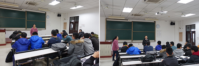 在自动化全英文教学专业座谈会上,彭熙伟教授重点介绍了2+2、3+1、3+1+1、毕业设计、暑期实践等国际交流合作项目,回答了学生关心的出国交流学习方面的问题。自动化全英文教学专业班主任郑戍华介绍了国外大学学生的学习、考试及独立生活等方面情况,并就如何提高英文水平、学好C语言等,提出了相关建议。硕士研究生徐雅雄、杨楠、毛尾介绍了自己同学在海外学习的情况,针对成绩绩点准备、托福考试等提出相关建议,并与自动化全英文教学专业学生就基础课程的学习进行了热烈讨论。