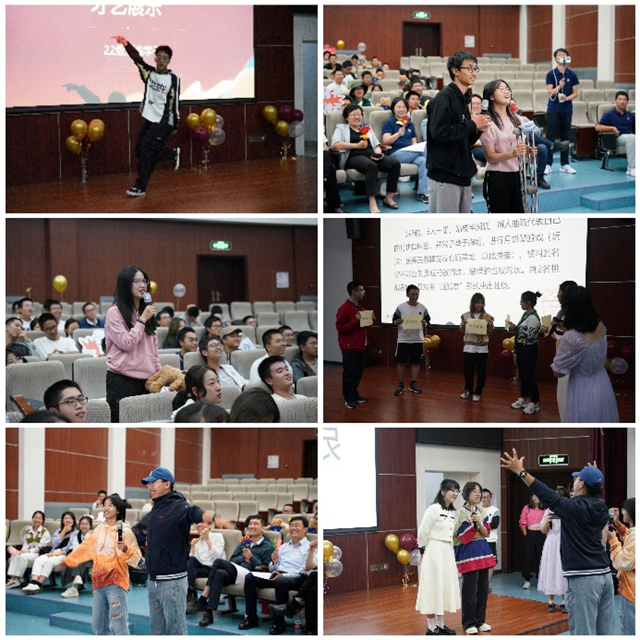2022级重庆南开中学学子冉嘉伟为大家带来了精彩的街舞表演。通过自我介绍、你来比划我来猜、击鼓传花三个游戏,新生们分享了北理故事,师生们加强了相互了解。临近中秋,招生组还设计了小游戏“月饼蹲”,与同学们共同庆祝来到北理工的第一个中秋节。现场笑声不断、气氛高涨。王博、张男、史大威、刘彤、刘伟、毛雪飞分别为新生们送上了寄语与节日祝福。