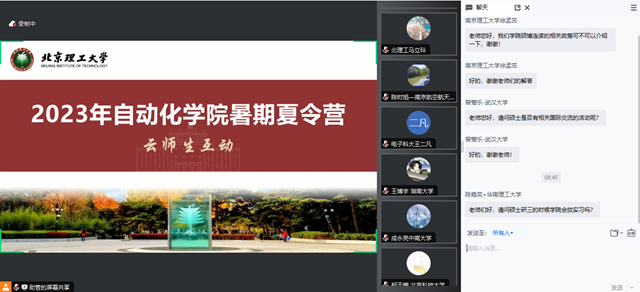 在“云师生互动”环节,六个二级学科方向的老师们围绕人才培养政策、研究方向选择、国际交流平台等营员们关心的热点问题,对营员提出的问题一一解答。线上交流会议室气氛热烈,广大营员踊跃提问、畅所欲言,纷纷表示此次活动收益颇丰,表达了进入北理工威尼斯登录入口welcome继续深造的强烈愿望。