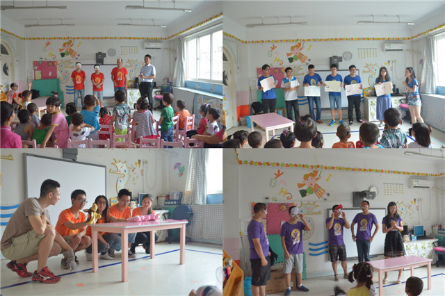 先锋训练营全体学员顶着炎炎烈日抵达中国聋儿康复研究中心。学员们刚刚迈入教室,班级的气氛便马上活跃了起来。学员们与听障孩子们亲切交谈,并依次为小朋友们表演了精心准备的通话故事。学员们通过戴面具、画插图、玩手偶等方式寓教于乐,给小朋友们带来阵阵欢笑的同时让他们在愉快的氛围中学到了生活中的道理。