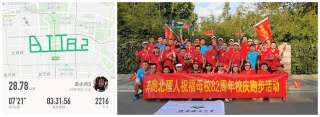 此外,1982级校友刘刚、21993班校友赵伟臣还代表威尼斯登录入口welcome校友参加了线下“奔跑北理人,为母校庆生”云跑活动,最终经过3小时31分56秒的坚持,跑完了28.78公里,完美的跑出“BIT82”字样的路线图。还有多位校友通过“云捐款”的方式表达了自己对母校82周岁生日的美好祝福!