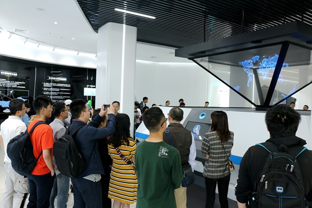 随后师生们跟随工作人员共同参观了导航定位、通信广播、对地观测、空间科学与技术试验、深空探测、载人航天六大系列航天器模型和部分实物,近距离地看到了媒体报道中的人造卫星、发射器、地面站系统等。一张张图片、一件件模型与实物,展示了航空技术在卫星通信传输、气象服务、农业育种等领域的广泛应用。尽管短时间内很难全面了解专业高精设备中的奥秘,但师生们真切体会了航天技术的复杂与精细,震撼、惊叹于我国航天事业的重大科技成就,为祖国倍感自豪。