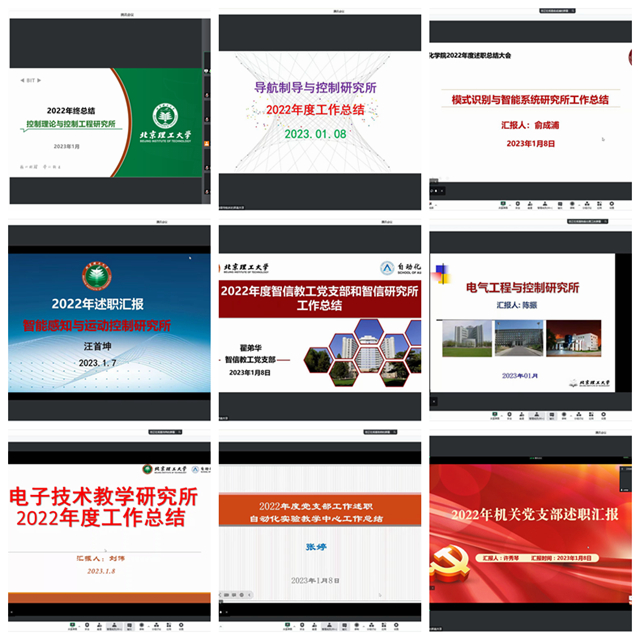 学院9位教工党支部书记、研究所(中心)所长(主任)围绕党建思政、教育教学、科学研究、队伍建设、公共服务等方面汇报了本年度工作,并对2023年的工作进行了规划。