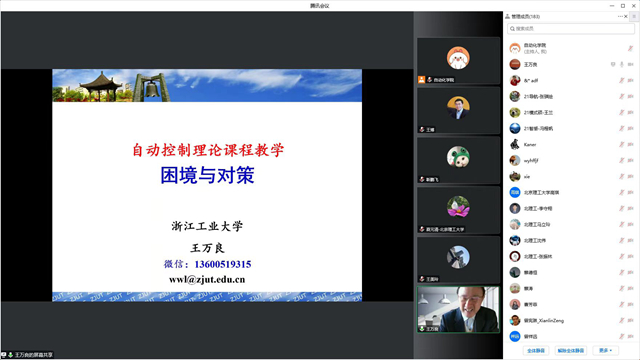 为丰富学院人才培养大讨论活动,提升人才培养水平,会议特别邀请国家级教学名师、国家级教学成果奖获得者浙江工业大学王万良教授作《自动控制理论课程教学困境与对策》专题报告。他分析了自动控制理论课程教学面临的困境,并从课程教材、教学内容、教学方法与教学案例、课程思政等方面提出对策,既有顶层设计,又有具体实施方案,主题鲜明、内容丰富、专业性强、指导性高,为学院课程教学建设提供了重要抓手。