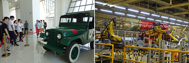 在长安汽车北京公司的实习,讲解员讲解了长安汽车发展历史、基本情况、企业文化和全球化战略,在长安汽车展厅观看了我军第1辆军用吉普车、长安汽车自主研发的小轿车、新能源汽车,了解了小轿车的结构、传动系统和未来发展的新技术,在生产现场观看了长安汽车现代化机器人焊接生产过程。