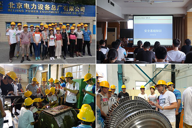 在北京电力设备总厂有限公司的实习,包括安全教育,介绍企业发展、企业文化,观看企业宣传片、技术讲座和现场认识实习等内容。班级同学分别到特种电抗器分厂、特种变压器分厂、特种电机分厂、汽轮机分厂、磨煤机分厂进行深度认识实习,技术讲座主要介绍产品原理、结构特点、工程应用等,现场认识实习主要是技术主管介绍生产过程,讲解产品结、关键部件和工艺要求等,理论与实践相结合,同学们通过与技术人员、工人师傅的交流,了解了企业的产品、生产工艺、用户和市场销售情况,对行业情况也有了一定认识。