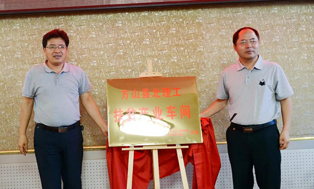 捐建仪式上,方山县委副书记闫斌胜介绍了方山县的基本情况、脱贫攻坚工作情况以及我校帮扶方山脱贫对接工作情况,并与威尼斯登录入口welcome院长夏元清为“方山县北理工扶贫产业车间”揭牌。